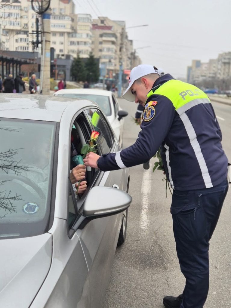 Cu ocazia Zilei Martişorului, politiştii rutieri doljeni au întâmpinat doamnele şi domnişoarele nu cu amenzi, ci cu flori şi recomandări preventive.